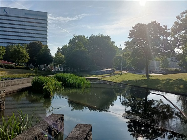 Kwart over zeven wakker en op. Nog voor negen uur zitten we aan het ontbijt in het café dat bij het hotel hoort. We hebben de trein van iets over tien en twee uur later zijn we thuis. Koffie. Dan lopen we het centrum in en bezoeken we twee winkels. Thuis lunch. Afwasje. Ik pak koffers in en wandel dan een rondje langs het kanaal. Krant op het balkon. Eind van de middag maak ik avondeten: een risotto met shiitake, bosui, paprika, tomaat en feta. Ernaast zet ik het restant salade van zaterdag. Voor De Vrouw bak ik steak bavette. We eten alles op. Afwas en afval. Laatste zaken inpakken. Webstek. Lezen op het balkon. Zeer op tijd slapen, want morgen nogal vroeg op.
