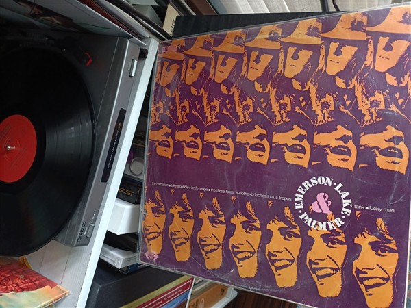 0933: Emerson Lake & Palmer – Emerson Lake & Palmer Emerson Lake & Palmer brengen hun debuutplaat uit in 1970. Het trio is dan net een paar maanden bij elkaar. Keith Emerson heeft de jaren ervoor zijn groep The Nice een enorme livereputatie bezorgd, Greg Lake mocht in 1969 bijdragen aan de debuutplaat van King Crimson en succesvolle tournees voordat die groep uiteenviel en Carl Palmer is de jonge wonderdrummer bij Arthur Brown en Atomic Rooster. De drie jongemannen repeteren de eerste helft van 1970 als bezetenen, maken hun officiële debuut op het Isle Of Wight Festival die zomer en gaan dan de studio in om een eerste plaat op te nemen. De eerste plaatkant laat goed horen waartoe het trio in staat is: invloeden uit klassiek, jazz en rock vermengen zij tot een technocratisch en toch levendig geheel. Dat vooral Emerson daarbij letterlijke citaten van klassieke werken gebruikt, draagt alleen maar bij aan het pompeuze karakter van de muziek. The Barbarian (van Bartok!) is een ongenadig heavy stuk met een folkloristisch jazzpiano-intermezzo halverwege, Take A Pebble is Lake’s pianoballad met daarin schitterende jazzy pianosolo’s en een folkwending op akoestische gitaar en Knife-Edge is een onheilspellende rocker met allerlei citaten van klassiekers (Janacek en anderen) erin. Op de tweede plaatkant is aandacht voor het individuele talent van de bandleden. In The Three Fates laat Emerson horen dat hij de meester is op kerkorgel en piano, Tank is een progjazzbeest met een drumsolo van Palmer en Moogtierelantijnen van Emerson en Lucky Man de akoestische hit van Lake met aan het eind de legendarische Moogsolo. Ik koop deze vinylversie op 17 juni 2025. Het is de zoveelste versie die ik aanschaf, want ik heb ‘m natuurlijk al lang, op vinyl en meerdere keren op cd. Ik zal ‘m dan ook slechts één keer afspelen en dan gaat hij de kast in. Wat wil het geval? Ik ben op zaterdag 14 juni 2025 in een platenwinkel aan de Amor de Dios in Sevilla. Niet om iets te kopen, want ik kan weinig meenemen in de kleine koffers die we tijdens de vakantie gebruiken. Gewoon leuk snuffelen. Tot ik op deze elpee stuit. Wat is dit? Ja, een versie van het ELP-debuutalbum, maar deze heb ik nog nooit gezien. Het is een Spaanse uitgave uit 1971 en uit enkele Spaanse regels op de achterkant van de hoes begrijp ik dat deze elpee speciaal ter beschikking stond voor abonnees op een Spaans muziektijdschrift. Ik zet ‘m terug in de bak en we verlaten Records Sevilla. Die avond zoek ik online naar deze versie en ik kom ‘m nergens tegen. Op Discogs is hij niet te vinden. Dat maakt ‘m dan wel uniek, lijkt me. Dinsdagmorgen 17 juni ben ik terug in de winkel en schaf ik ‘m aan. Ik vraag de man achter de toonbank of het klopt wat ik op de achterzijde van de hoes lees en hij bevestigt mijn vermoeden. Aha. Kopen, dus. Leuk hebbeding, deze versie van de legendarische debuutplaat van Emerson Lake & Palmer.