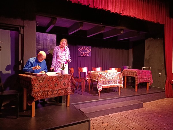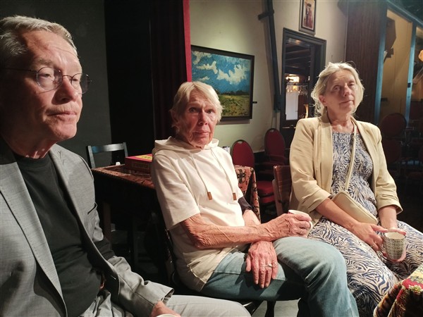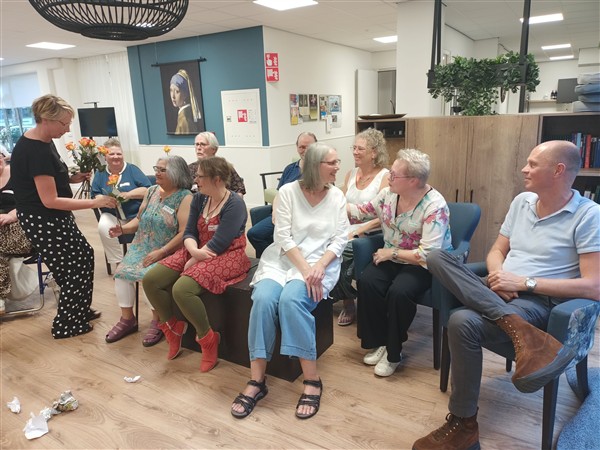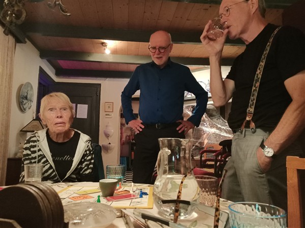Vrijdag 20 juni: Zes uur. Kramp in kuit. Pijnlijke kramp in kuit. Koffie. Ontbijt. Ik loop een ronde hard langs Grift en kanaal. Kramp weg. Begin van de ochtend kijk ik op werkmail of er info is hoe het programma van vanmiddag is. Veel mail in beveiligde quarantaine en niet terug te halen. Ik wil iemand appen, maar de werktelefoon heeft een update en plots is er iets met een wachtwoord en heb ik geen toegang. Nou ja. Ik loop de zaterdagmorgenronde langs slager en super. Het is al zeer aangenaam buiten. Koffie met De Vrouw op het balkon. Dan op de fiets naar de audicien. Kosten voor reparatie hoortoestel zijn hoog; de garantie is al een jaar verlopen. Ik vermoed dat ik iets anders verzin. Wordt vervolgd. Op de terugweg haal ik het groentepakket op. Thuis koffie met De Vrouw op het balkon. Lunch. Afwasje. We lopen naar Gigant. Vanmiddag is de première van de documentaire Een cadeau in zwart papier van Joost Ooijman, over Theater Wirwar. De afgelopen maanden hebben de opnamen plaatsgevonden op de woensdagmorgen tijdens de repetities en op donderdag 20 november tijdens de voorstelling in Raalte. Vanmiddag louter genodigden in het publiek: spelers en hun familie, sponsors, mensen uit het netwerk en de wethouder. Iedereen is diep onder de indruk van de film. Na afloop leid ik het gesprek tussen maker, spelers en de zaal. Daarna weer is er informele afsluiting in de foyer. Half zeven zijn we thuis. Ik maak een snelle schotel van ui, paksoy, courgette, tomaat en zwarte boon, met ernaast een salade van bosui, koolrabi, komkommer en druif. Voor De Vrouw en De Zoon bak ik runderschnitzel. De Zoon is er iets na zeven uur en we eten alles op. Natafelen. Afwasje. Lezen op het balkon. Webstek. Muziek vandaag: geen