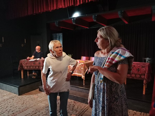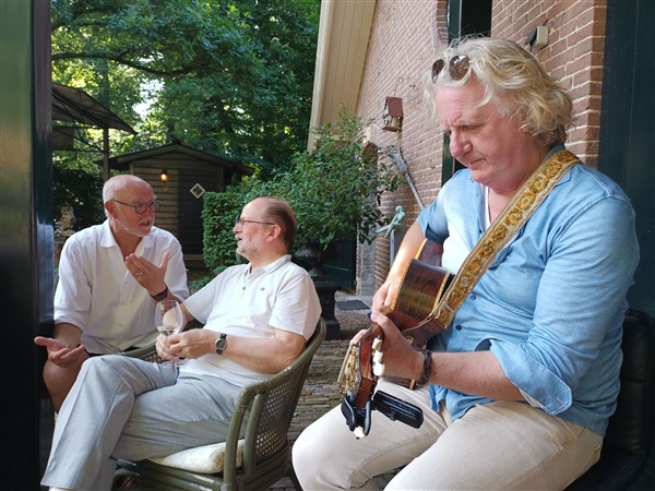 Dinsdag 24 juni: Ondanks een korte nacht redelijk geslapen. Toch gaat opstaan moeizaam. Eenmaal op gang: geen probleem. Op tijd op de werkplek. Daar weer een wervelwind aan werkzaamheden. Tussen de middag wandel ik door bos. Kwart over vijf thuis. De Vrouw serveert het restant nasiachtige schotel van gisteren met een ferme salade ernaast. We eten alles op. Afwasje. Zeven uur ben ik weer bij Peter-Jan en gevieren rijden we naar Kleine Noordijk. Vanavond is Hans er niet bij en dat geeft ons goed de gelegenheid om alle scènes nog eens grondig door te nemen en bij te schaven. Het spel wordt natuurlijker en vloeiender. Vruchtbare avond. Elf uur thuis. Even bijpraten, dan slapen. Muziek vandaag: geen