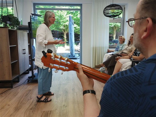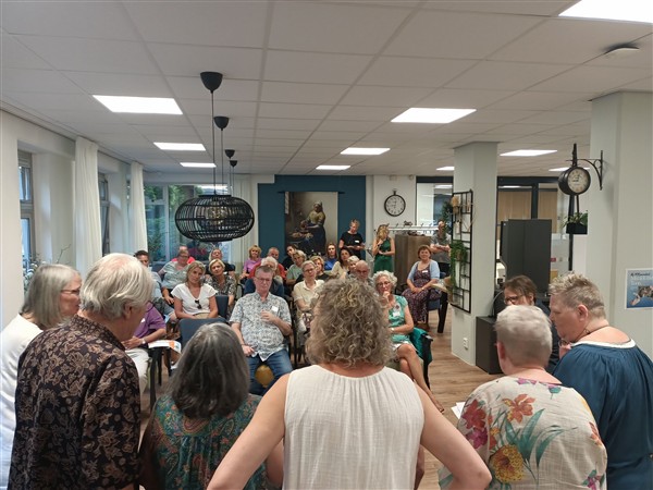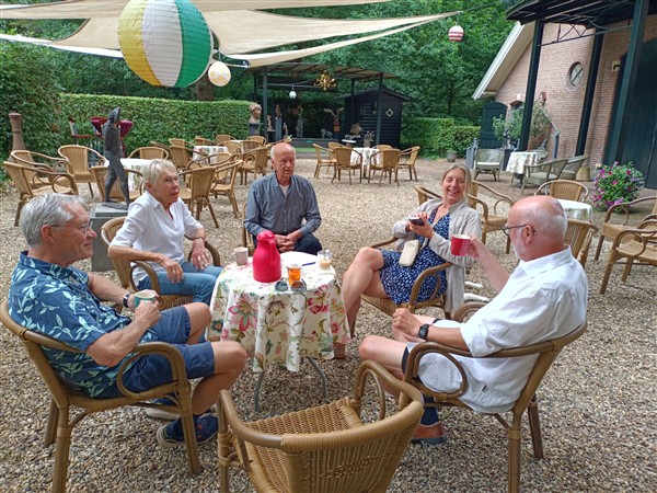 Woensdag 25 juni: Zes uur. Ik loop een ronde hard om het centrum, beetje moeizaam, maar het lukt. Het is al goed benauwd. Begin van de ochtend wandel ik naar de super. Koffie op het balkon. Wat voorbereidingen voor de zondagmiddag. Kranten. Meer koffie met De Vrouw. Dan lunch. Afwasje en huishoudelijks. Begin van de middag bij ik bij een audicien om mogelijkheden te bespreken. Vervolgafspraak volgende woensdag. Erna fiets ik naar Onze Vader voor waszaken. Thuis héél even rust. Dan maak ik avondeten: een soep van kastanjechampignon, ui, aardappel, courgette, bataat en linzen. Wat brood ernaast en klaar. We eten alles op. Afwasje en afval. Ik fiets naar het gebouw van een welzijnsorganisatie. Daar is een voorlichtingsavond voor vrijwilligers en belangstellenden over hersenletsel en Wirwar mag drie kwartier vullen. Die drie kwartier blijkt in de tweede helft te zijn, dus wachten we van half zeven tot bijna half negen. De voorstelling is bijna identiek aan die van 10 april, dus het loopt mooi soepel. Ik leid het gesprek na afloop en er komen voornamelijk complimenten aan de spelers. Tien uur thuis. Even bijpraten en dan slapen. Muziek vandaag: geen