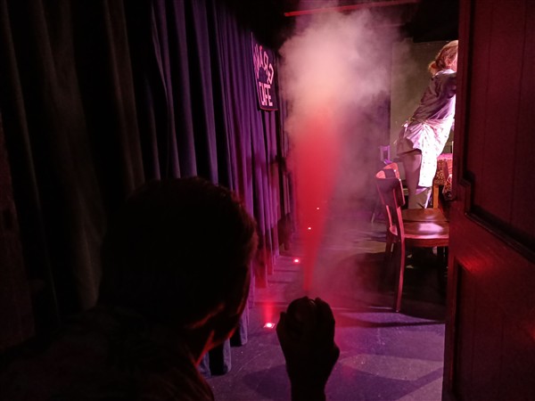 Binnen was het bijna donker. Toen zijn ogen aan het weinige licht waren gewend, zag meneer Vuistsnede een toonbank met daarachter donkerbruine glazen potten in een open kast. In de zaak bevond zich naast meneer Vuistsnede en Beitel niemand. Meneer Vuistsnede kuchte. Even later hoorde hij gestommel en een deur achter de toonbank ging open. Er verscheen een oude man met een grijze baard en bijna witte halflange haren. De man leek niet door te hebben dat hij klanten had en begon op de toonbank in vergeelde paperassen te bladeren. Meneer Vuistsnede kuchte nogmaals. ‘Daar heb ik wel iets tegen,’ zei de grijsaard. ‘Momentje.’ Hij draaide zich om, bukte en pakte een trapje. Beverig beklom hij de treden, zo ver dat hij net bij een grote weckfles kon. Die haalde hij uit het schap. Toen daalde hij weer af. Vervolgens opende hij een lade en haalde daar een bijna verroeste lepel uit, waarmee hij in de weckfles roerde en er iets uit schepte. Toen stak hij zijn arm uit en hield meneer Vuistsnede de lepel voor. ‘Belladonna. Dit helpt.’ Meneer Vuistsnede aarzelde. ‘Neem,’ zei de drogist. Meneer Vuistsnede boog voorover en hapte.