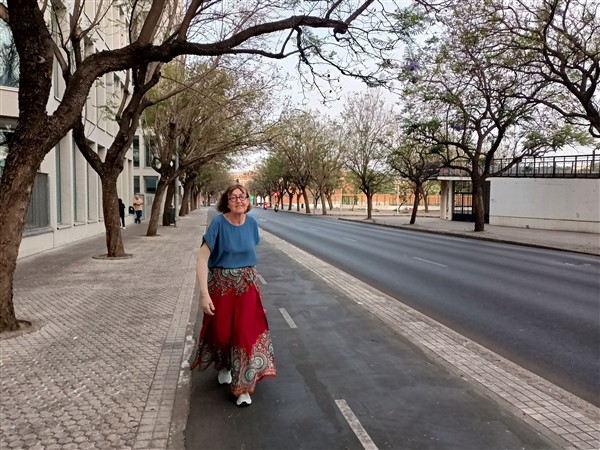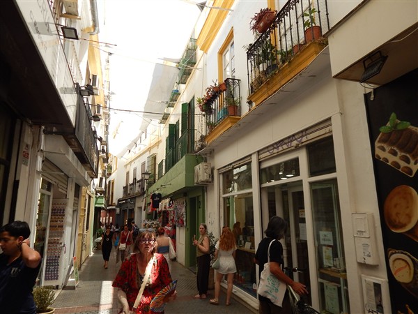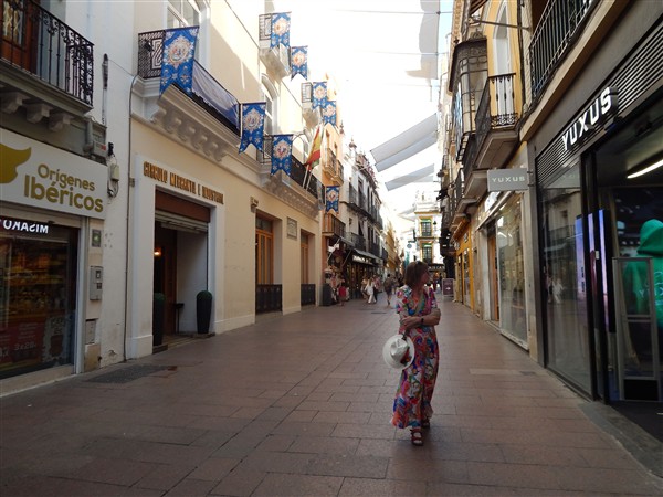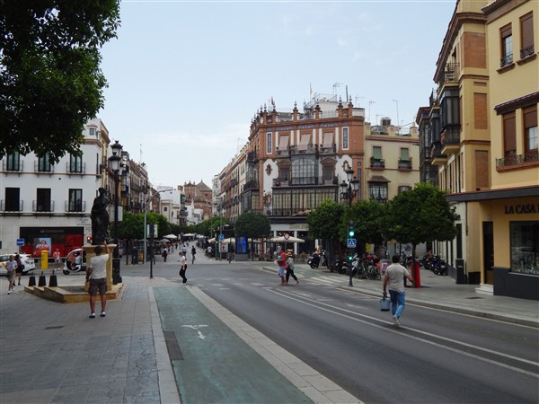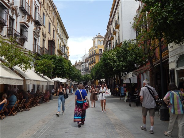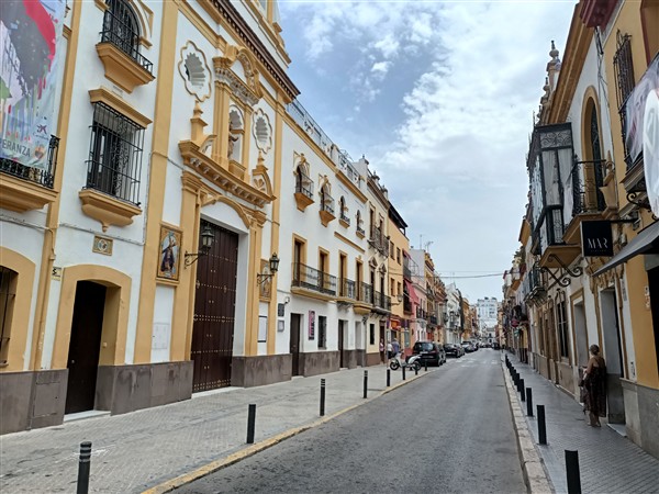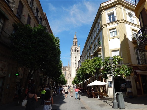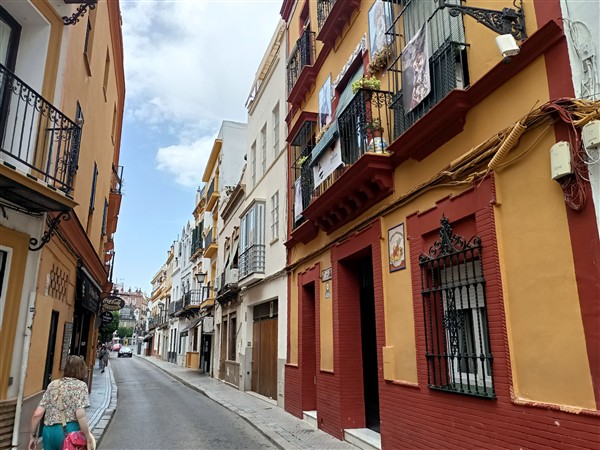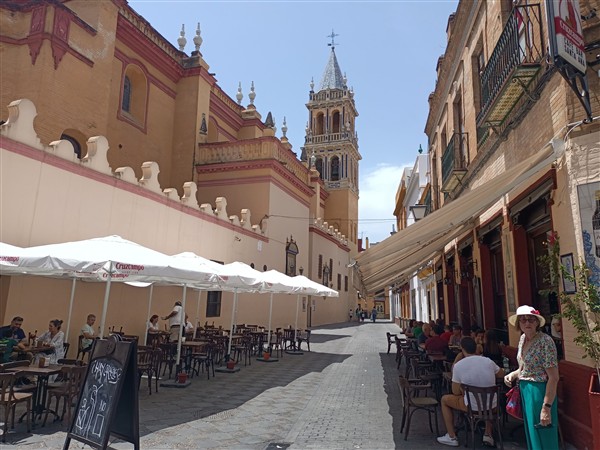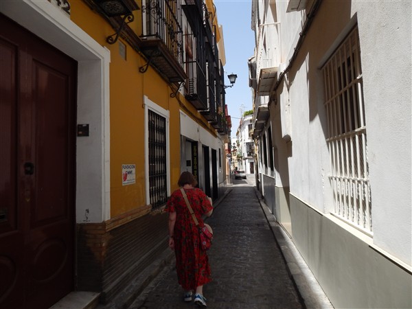 Maandag 16 juni: Sevilla Acht uur op. Koffie. Dan loop ik naar een audicien niet ver van het appartementencomplex vandaan. De zaak is net open, twee vriendelijke dames spreken geen Engels, maar ik weet het uit te leggen. Ik mag een kamer apart in en daar beginnen ze te peuteren. Na een minuut of wat merk ik dat het ze niet lukt; er komen twee mannelijke collega’s bij, de een spreekt uitstekend Engels. Ik mag naar een andere kamer, daar is een computer met een camera. Met probeert het nog een paar keer, nu voel ik dat hij steeds dieper gaat zitten en de druk op mijn trommelvlies wordt nu pijnlijk. De speaker blijkt overdwars te zitten. Ik vraag of het kwaad zou kunnen als het nog een dag of wat erin blijft: woensdag ga ik weer naar huis. Niet aan te raden, kans op infectie. Getelefoneer. Ik krijg een verwijzing naar een gespecialiseerd arts, die praktijk houdt bij de Plaza de Jerez. Laat daar nu net de bushalte zijn waar we gisteren zijn uitgestapt en waar we vandaag opnieuw naar toe willen. Ik moet er vóór een uur zijn en de arts weet dat ik kom. En betalen hoef ik nu niets, nada. Ik bedank de medewerkers hartelijk voor hun behulpzaamheid. Op de terugweg haal ik brood bij de bakker en kaas bij de supermercado. Koffie en ontbijt. Dan gaan we op pad. Was het anderhalf uur ervoor nog aangenaam buiten, nu is het al heet. Vandaag wordt het 39-40°C. Het is druk in de bus 5. Bij het Plaza de Perez is het even zoeken, maar we vinden de praktijk van de ottorrinolaringalogía (jaja) snel. Eerst beneden in de hal wachten, later op de eerste verdieping. De arts spreekt nauwelijks Engels, maar gebaart me te gaan liggen. Eerst bekijkt ze mijn rechteroor, vervolgens het linker. Ze kan de speaker goed bereiken, maar niet vastpakken. De druk op mijn trommelvlies wordt nóg pijnlijker. Ik begrijp dat het nog niet lukt en ze grovere instrumenten nodig heeft. Even is het heel pijnlijk, maar de daaropvolgende opluchting is groot. Gelukt. Kosten? ‘Nada.’ Wederom hartelijke dank. Buiten is het schroeiend heet en we proberen een stuk van ons oorspronkelijke plan voor vandaag uit te voeren. We steken de rivier Guadalquivir over en komen zo in de wijk Triana. De Vrouw moet naar een Farmacia, want pijnlijke hiel. De eerste Farmacia heeft geen gelzooltjes, kan ze wel bestellen en dan zijn ze er eind van de middag. No, gracia. We drinken iets op een terras en zoeken een volgende Farmacia. Die zijn er hier volop. Vlakbij. Die heeft ze. Voor de deur neemt De Vrouw ze in gebruik. Het biedt wat verlichting, maar ze heeft er nog meer of dikkere nodig. We wandelen langs de Guadalquivir en door de wijk Triana. Van de keramiekzaakjes zien we er niet veel, want de meesten zijn ’s middags gesloten, we zijn helaas net te laat. Onderweg, onder de kerk Santa Ana, lunchen we licht met salades en water. Dan nog wat verder noordwaarts naar de Ponte de Triana. Daar gaat de Farmacia bijna sluiten, maar we mogen toch nog even naar binnen. Helaas, niet de beoogde inleggelzooltjes. Via de oostzijde van de Guadalquivir wandelen we terug naar het Plaza de Perez. Daar is een volgende Farmacia en daar slagen we. Met bus 5 terug. Bij de super kopen we water en half vijf zijn we terug in het appartement. Rusten. Kwart over acht lopen we naar een klein grillrestaurant en daar eten we rijst met gewokte groenten (en kip). Eenvoudig, maar zeer smakelijk. Op de terugweg ijs, want het is nog 39°C. Half elf thuis.