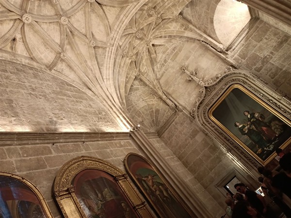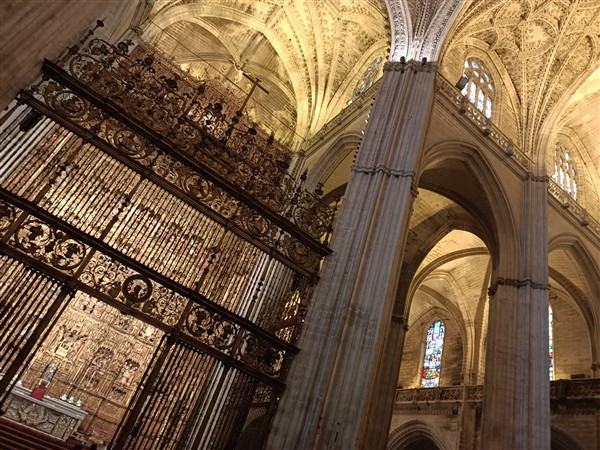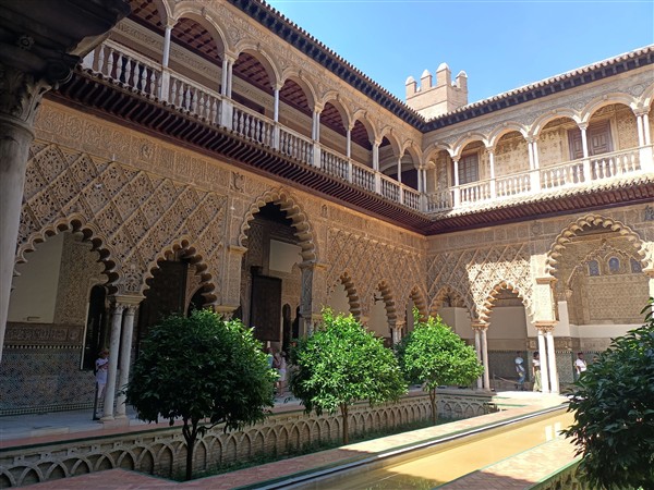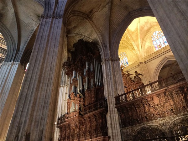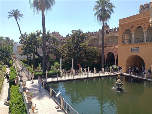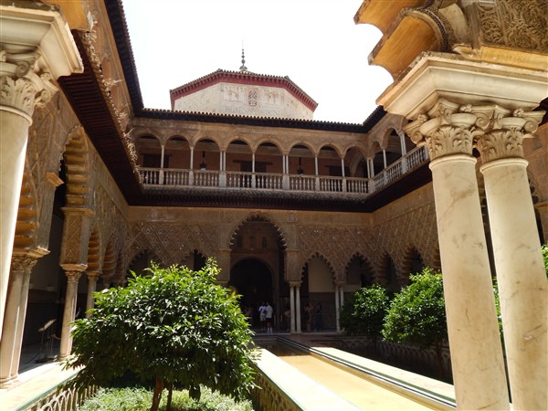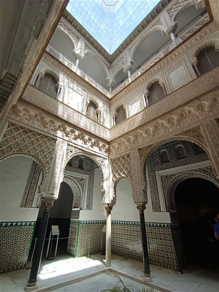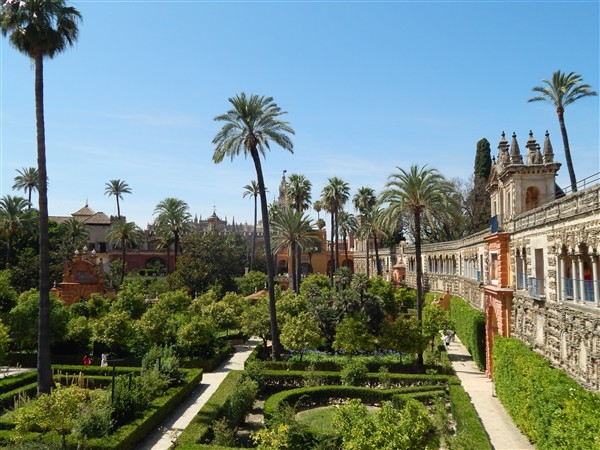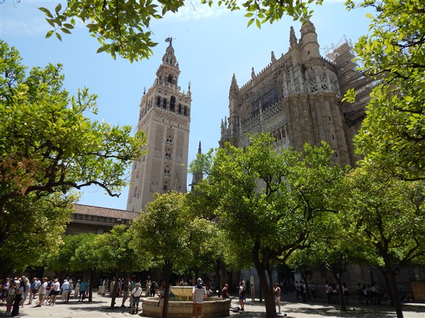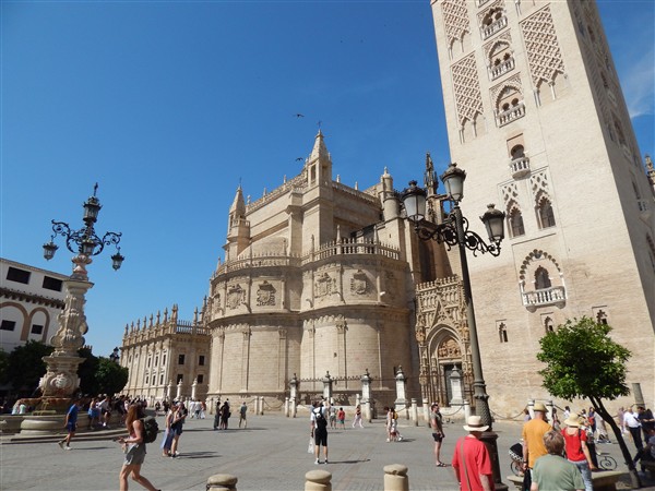 Vrijdag 13 juni: Sevilla Acht uur op. Koffie. Dan naar een ambachtelijke bakker een paar blokken verderop. Ontbijt en meer koffie. Half elf gaan we op pad. Op de hoek van de straat komen we een Brit tegen: ‘Nice shirt!’ We raken kort aan de praat. Hij waarschuwt ons om tussen twee en vijf voorzichtig te zijn vanwege de hitte. Vandaag 35°C. We wandelen de wijk Santa Cruz in en bezoeken de imbeciel grote Catedral en La Giralda. Hier kijken we een paar uur rond. Het is zeer indrukwekkend. We lunchen in een klein eettentje in een smalle straat iets verderop: salades en smoothies. Veel verse groenten, fijn. Dan kopen we toegangskaarten voor het Real Alcázar, het koninklijk paleis. We kunnen er pas om half vier in; de drie kwartier besteden we aan ijs eten in de schaduw. Het paleis en de tuinen zijn schitterend; we kijken onze ogen uit. Na afloop is er nog energie voor een wandeling door winkelstraatjes en plots staan we voor de Metropol Parasol. We gaan naar het centrale plateau en rusten wat uit. Een andere dag beklimmen we hem misschien, nu is de energie even op. Op de terugweg kijken we naar eettentjes en zowaar, we vinden een aardige tapasbar onder het kerkje Iglesia del Señor San José. Iberico, spinaziekroketten, gefrituurde aubergine en patatas bravas. Dan is het niet ver meer naar het appartement. Daar een was aan, wat lezen en dan slapen. 35° zeer zonnig en heet.