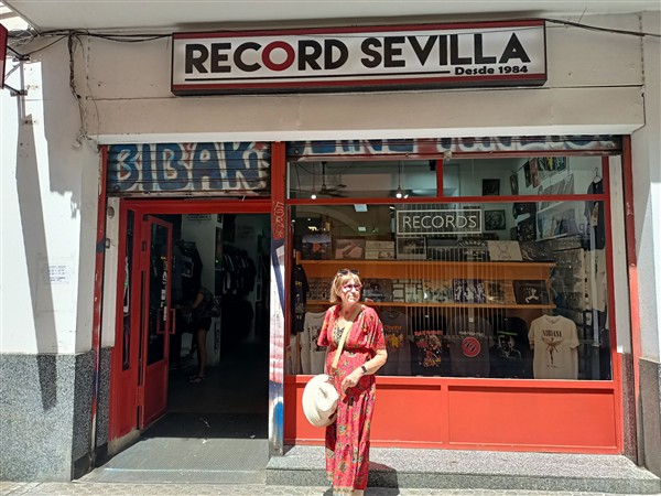 Dinsdag 17 juni: Sevilla Kwart voor acht op. Koffie. Dan naar de bakker. Koffie en ontbijt. Na tien uur op pad. Bus 27 naar de wijk La Macarena . Eerst naar de straat Amor de Dias en meer bepaald platenwinkel Record Sevilla, daar zag ik zaterdag wat bijzonders staan en dat koop ik nu. Koffie en water op het Alameda de Hércules. Dan door smalle straatjes naar de Iglesia San Luís de los Franceses. We zien de expositie, de kapel, de crypte en de kerk. Mooi, indrukwekkend. Als we weer buiten komen, is het heel warm. Gelukkig is het dan nog een klein stukje en onderweg komen we alleraardigst eethuisje La Cacharreria tegen. Daar bestellen we salades en smoothies. De bushalte is vlakbij en we hebben snel bus 27 terug. Drie uur zijn we in het appartement. Rust en alvast wat inpakken voor morgen. Kwart over zeven lopen we naar het Indiaas restaurant waar we zaterdag ook waren. We eten spring rolls en samosa, en curry’s met kip en paneer. Op de terugweg zien we een bord met tijd en temperatuur: 21.10 uur en 41°C. Dus. Dus is er ijs. Terug in het appartement breng ik afval naar containers (dat mag hier alleen ’s avonds na achten). Nog heel even zitten en dan slapen.
