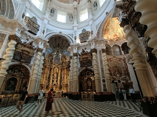 Zaterdag 7 juni: Granada Kwart voor acht op. De bedoeling van vandaag is dat we het rustig aan doen. Ik haal brood bij de bakker en we nuttigen koffie en ontbijt. Half elf gaan we de deur uit. We pakken bus 8 en buiten het centrum stappen we bij het Monasterio de la Cartuja uit. Het klooster is niet heel groot en we hebben een dik uur om het te bekijken. Maar hoe fraai is het! Vooral de kerk en sacristie zijn indrukwekkend. Adembenemend. We zien het met open mond. Buiten is het dan al zeer warm. We nemen bus 8 terug naar het Centro van Granada. Met onze tickets van het Alhambra hebben we ook toegang tot het Monasterio en nog een paar andere musea, waaronder de Capilla Real, die aan de Catedral vast zit. Deze pikken we ook even mee. Na het Monasterio valt het wat tegen, maar toch is het aardig om te zien. Datzelfde geldt ook voor het Casa de los Tiros. Tijd voor smoothies en toast bij Artesanos de Granada. Via verschillende winkelstraten lopen we terug naar appartement. Vandaag hebben we het inderdaad rustig aan gedaan, maar toch hebben we weer heel veel gezien. In het appartement rusten we weer. Na achten gaan we naar buiten. Op het plein achter het appartementencomplex zijn een paar eettentjes, we nemen plaats op het terras van een Italiaan. Langzaam komt er veel lokaal of buurtvolk. We eten pizza met paddestoelen, kerstomaat, gekarameliseerde uien en geitenkaas. Uitstekend. Na tienen zijn we terug in het appartement om even te lezen en dan te slapen. 34°C zonnig.