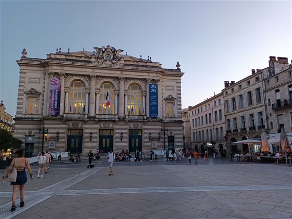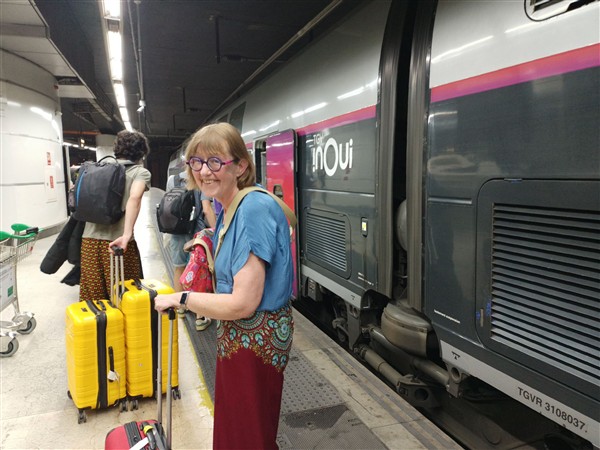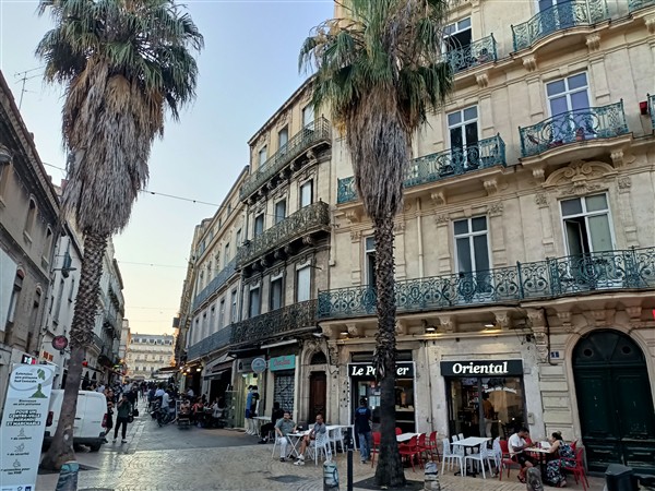 Woensdag 18 juni: van Sevilla naar Montpellier Kwart voor vijf gaat een wekker. Koffie, koffers, ontbijt. We vertrekken om 06.45 en omdat De Vrouw wat langzamer loopt vanwege voetproblemen, doen we een half uurtje over de voettocht naar het station Sevilla Santa Justa. Het is al benauwd. We hebben een reservering voor de trein van 08.36, we gaan door de bagagecontrole en als we op het perron voor de derde keer onze tickets laten controleren, blijken onze reserveringen geannuleerd. Huh? Barst. De beambte raadt ons aan om terug naar de kaartverkoopbalie te gaan en reserveringen te kopen voor een trein later, die van 09.36. We zien onze geplande trein wegrijden. Wat is dit? De medewerker achter de balie is uiterst behulpzaam. Er is nog plek in de trein van een uur later. Die nemen we maar al te graag. In Barcelona zouden we twee uur overstaptijd hebben, maar onze aansluiting is daar nu dus krapper. De trein van 09.36 vertrekt op tijd, maar rijdt in het eerste uur zeer langzaam en we staan een paar keer lang stil. Oei, we krijgen mogelijk een nieuw probleem, maar deze trein rijdt een iets andere route en heeft in Madrid een stop van dik een kwartier, misschien valt er wat in te halen? Helaas. De trein heeft uiteindelijk veertig minuten vertraging en het lijkt erop dat we in Barcelona de laatste trein naar Montpellier missen. Gestrand in Barcelona, dus. Dat zal betekenen dat we een nieuwe route voor morgen moeten plannen, nieuwe stoelreserveringen moeten kopen en een hotel in Barcelona moeten zoeken. En dan hopen dat we morgen geluk hebben met de aansluitingen en ’s avonds thuis komen. Vanaf Madrid maken we een alternatief reisplan. Maar! De trein haalt iets van de achterstand in en we zijn om vier uur in Barcelona. Twintig minuten hebben we om bij de volgende trein te komen. We zijn aangekomen helemaal aan het eind van het perron en het kost ons tien minuten om bij de roltrap te komen. Eenmaal boven in de hal zien we gelijk een overzichtsbord met de vertrekkende treinen en de onze gaat vanaf spoor 6. Het station van Barcelona is zoals we weten nogal onoverzichtelijk en enorm druk, dus we zijn bang. Waar is spoor 6? Wacht, hier twintig meter vandaan. Daar staat een grote meute te wachten op toegang tot het perron 6. Wat een mazzel. We redden het! En die trein vertrekt ook weer wat later dan gepland. De opluchting is groot. We hebben in de afgelopen twee uur een goed alternatief plan gemaakt, maar de huidige situatie scheelt een hoop gedoe, gestress en klauwen met geld. Acht uur ’s avonds komen we aan in Montpellier. Ons hotel ligt nog geen honderd meter van het stationsplein vandaan. Het blijkt een superklein en knullig hotel te zijn: de administratie is op losse vellen half afgescheurd papier, de dienstdoende medewerker schrijft onleesbaar onze namen op een snipper papier en op een ander mijn pasnummer. De hotelkamer is op de eerste verdieping, maar met de lift daar aangekomen moeten we een lange gang door en dan een trap af en dan komen we bij de kamer. Het toilet doet het niet. Vermakelijk allemaal. We installeren ons en gaan naar het (ons bekende) dichtbijgelegen Indiaas restaurant om wat eten: pakora, samosa , paneer palak en kipcurry. Smakelijk, zeer smakelijk. Dan wandelen we nog even naar het Place de la Comédie, daar eten we ijs en vervolgens terug naar het hotel. 30°C, zeer zonnig.
