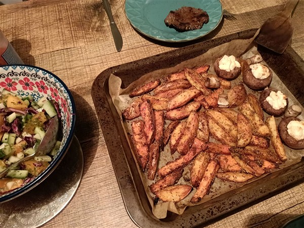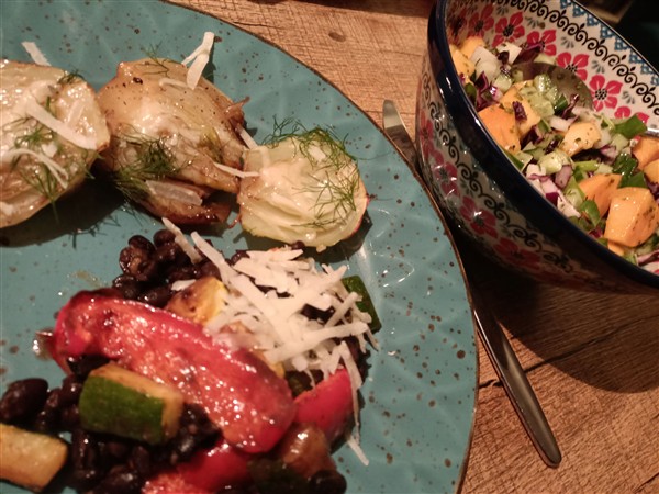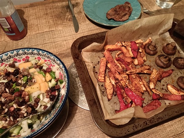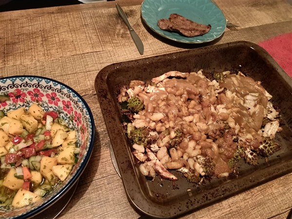 Half zes. Ik loop een ronde hard om het centrum. Lukt goed. Begin van de ochtend wandel ik naar de super. Koffie met De Vrouw. Meer koffie met De Vrouw. Lunch. Afwasje en huishoudelijks. Dan naar Gigant voor de repetitie van Wirwar. Erna fiets ik door naar Onze Vader om de was te wisselen. Krant. Eind van de middag maak ik avondeten: romanesco, knolselderij, courgette en rozijn uit de oven met een knolflooktahindressing. Een klein restant salade van gisteren vul ik aan met kaki. Voor De Vrouw bak ik runderschnitzel. We eten alles op. Natafelen. Afwasje. Lezen. Webstek. Lezen.