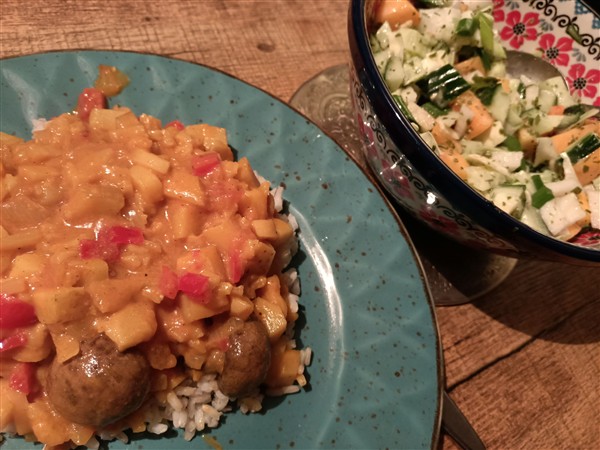 Op tijd op de werkplek. Tussen de middag wandel ik door veld en bos. Kwart over vijf thuis. De Vrouw serveert rijst met een curry van allerlei groenten en ernaast salade. Natafelen. Afwasje. Krant. Webstek. Lezen.