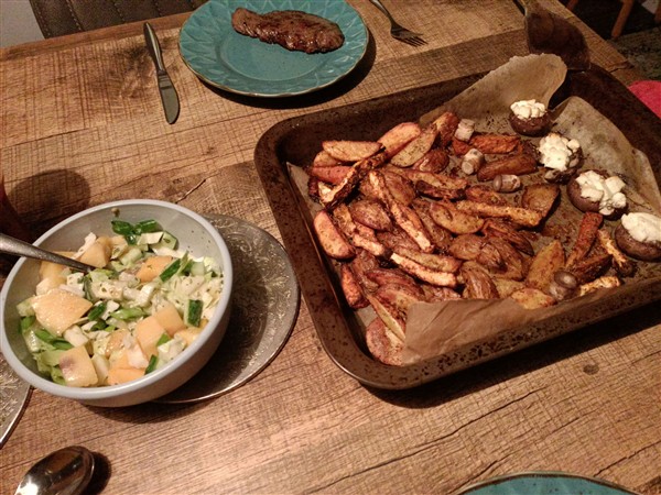 Kwart over zeven wakker en op. Koffie. Krant. Meer koffie met De Vrouw. Ik wandel naar de super. Nog meer koffie met De Vrouw. We puzzelen wat op treinreizen tijdens de zomervakantie. Lunch. Afwasje. Ik wandel een klein rondje langs kanaal. We puzzelen verder op onze mogelijke reis in de zomervakantie en besluiten dat het met de bus net zo avontuurlijk is én goedkoper. We stippelen een mooie route uit. Eind van de middag maak ik avondeten: eerst een salade van bosui, koolrabi, komkommer en kaki; vervolgens een curry van ui, bosui, paprika en zuckerhut (groenlof). Voor De Vrouw bak ik runderschnitzel. We eten alles op. Natafelen. Afwasje. Krant. Webstek. Lezen.
