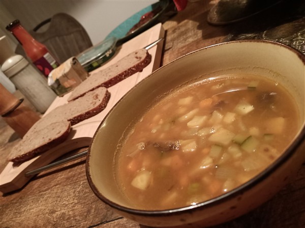 Weer op tijd op de werkplek. Tussen de middag wandel ik door bos. Kwart over vijf thuis. De Vrouw serveert het restant groentecurry van eergisteren met een salade ernaast. We eten alles op. Natafelen. Afwasje. Krant. Webstek. Lezen.