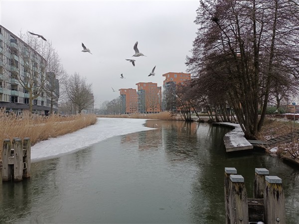 Woensdag 7 januari: Kwart voor zes. Ik loop een ronde hard om het centrum. Het is licht gaan sneeuwen en lopen gaat daardoor lastiger, maar het lukt goed. Begin van de ochtend loop ik naar de super. Inmiddels is er een fikse sneeuwstorm gaande, maar daar kom ik goed doorheen. Koffie met De Vrouw. Kranten. We lopen even het centrum in voor wat kleinigheden. Meer koffie met De Vrouw. Lunch. Afwasje en huishoudelijks. Op de planning staat dat ik vanmiddag was ga wisselen bij Onze Vader en hem daarna opzoek in het ziekenhuis, maar de blizzard is nog woest. In plaats daarvan wandel ik een rondje langs kanaal en door park en je zult het zien: de sneeuwstorm is gaan liggen. Nou ja. Wat uitrusten. Eind van de middag maak ik avondeten. Eerst een salade van bosui, rode kool, komkommer en kaki. Dan paprika, courgette en knolselderij in een braadslede de oven in. Na tien minuten leg ik er met feta en bosui gevulde portabello bij in. Ten slotte bak ik runderschnitzel voor De Vrouw. We eten alles op. Natafelen. Afwasje. Krant. Webstek. Lezen en toneeltekst. Muziek vandaag: Liminal (Brian Eno & Beatie Wolfe), (No Pussyfooting) (Fripp & Eno), A Map Of The World (Pat Metheny)