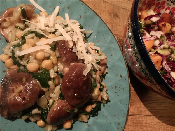 Zondag 11 januari: Kwart voor zes. Ik loop een ronde hard langs het kanaal. Het is heel koud, het vriest bijna tien graden, maar lopen gaat bijzonder goed. Thuis nog terug in bed. Kwart over negen staan we op. Koffie. Lezen. Meer koffie met De Vrouw. De Zoon is er om half een voor lunch. Afwasje. Ik wandel een rondje langs het kanaal en door koude. Vier uur is er de zondagmiddagluistersessie met de Duitsche vrienden (Fat Dog). Eind van de middag maak ik avondeten. Eerst vul ik het kleine restant salade van vrijdag aan met koolrabi, rode kool, komkommer en kaki. Vervolgens maak ik een risotto met shiitake, ui, een restje bindsla, kikkererwten en babyspinazie. Voor De Vrouw bak ik steak bavette. We eten alles op. Afwasje en afval. Krant. Webstek. Lezen. Muziek vandaag: Union (Yes), Ranarop (Gjallarhorn)