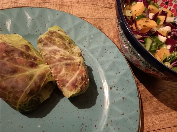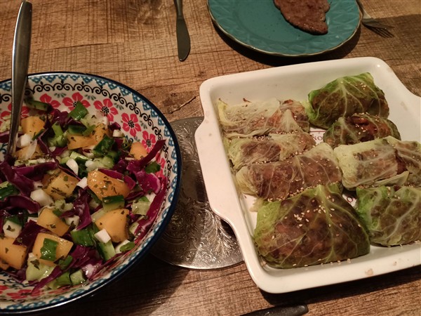 Woensdag 14 januari: Zes uur. Ik loop een ronde hard om het centrum. Het lukt. Begin van de ochtend wandel ik naar de super. Koffie met De Vrouw. We overwegen of we eind maart naar het Moo-aah!-festival in Corby gaan, want The Muffin Men en John Etheridge’s Zappatistas, maar we besluiten het niet te doen vanwege de hoge transport- en verblijfskosten. Meer koffie met De Vrouw. Lunch. Afwasje. Lezen. Half drie fiets ik naar de herstelafdeling die naast het ziekenhuis is gelegen. Onze Vader is er begin van de middag opgenomen en ik tref hem aan als hij wil gaan rusten. Het weinige dat hij vandaag heeft gedaan is voor hem zeer enerverend. Ik wissel de was, we wisselen een paar woorden en dan laat ik hem rusten en fiets ik weer terug. Lezen. Eind van de middag maak ik avondeten. Ik kook groenekoolbladeren. Ondertussen monteer ik een salade van bosui, koolrabi, rode kool, komkommer en kaki. Vervolgens maak ik een vulling van ui, bataat en adukibonen, waarmee ik de koolbladen vul. Ik leg ze in een ovenschaal en houd ze warm in de oven. Ten slotte bak ik runderschnitzel voor De Vrouw. We eten er goed van; er zijn nog koolpakketjes over voor morgen. Natafelen. Afwasje. Krant. Webstek. Toneeltekst en lezen. Muziek vandaag: het tweede en derde plaatje uit de doos Yesyears (Yes), We’re Here Because We’re Here (Anathema), Lumen (Bill Laurance)