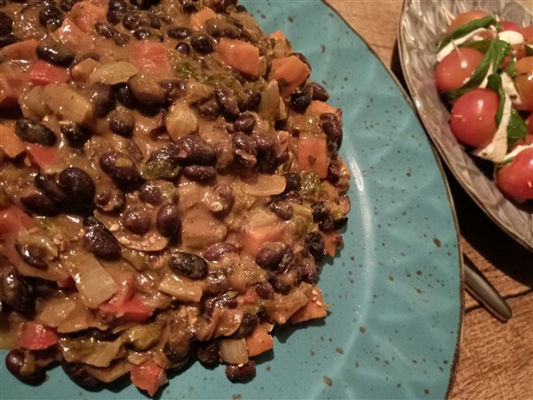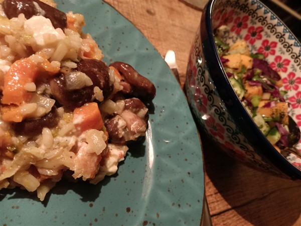 Zondag 18 januari: Half zeven. Ik loop een ronde hard langs het kanaal en buiten het centrum en het lukt goed. Thuis nog terug in bed. Pas om half tien staan we op. Koffie met De Vrouw. Nog wat puzzelen op de vakantiereis in juni. Meer koffie met De Vrouw. En nog wat meer puzzelen op de vakantiereis in juni. De Zoon is er om half een voor lunch. Afwasje en stofzuigen. Ik wandel een rondje langs het kanaal. Vier uur is er de zondagmiddagluistersessie met de Duitsche vrienden (MaidaVale). Erna maak ik avondeten. Eerst een salade van bosui, koolrabi, rode kool, komkommer en kaki. Vervolgens een risotto met ui, groene kool, zoete aardappel en feta. Ondertussen warm ik voor De Vrouw het restant groenekoolschotel van gisteren en eergisteren op. Ten slotte bak ik – ook voor De Vrouw – steak bavette. We eten alles op. Natafelen. Afwas en afval. Krant. Webstek. Lezen. Muziek vandaag: The Affirmative: The Yes Solo Family Album (allerlei), Rimfaxe (Gallarhorn)
