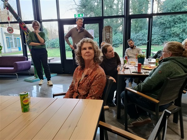Donderdag 22 januari: Dus weer op tijd op de werkplek. Werk. Tussen de middag wandel ik door bos. Eind van de middag is er een jubileumfeest van een gewaardeerde collega en daar ben ik (kort) bij. Kwart voor zes thuis. De Vrouw serveert het restant aardappel-pompoen-zuurkool-feta-schotel van gisteren en de curry van eergisteren uit de oven, met ernaast salade. We eten alles op. Natafelen. Afwasje. Dan fiets ik naar Ugchelen voor de toneelrepetitie. We spelen twee scènes meerdere keren door en zijn verbaasd over hoe soepel het gaat. Ik merk dat ik veel herhaling nodig heb om zowel tekst als beweging erin te krijgen. Half elf thuis. Even bijpraten, dan slapen. Muziek vandaag: geen