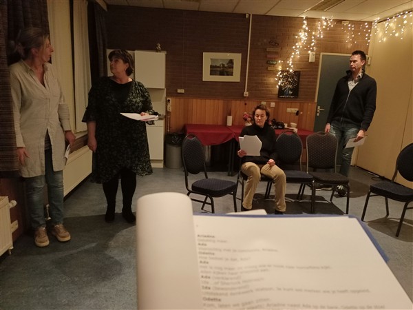 Donderdag 15 januari: Weer op tijd op de werkplek. Werk. Tussen de middag wandel ik door bos. Werk. Kwart over vijf thuis. De Vrouw serveert een witlofcurrysoep, het restant gevulde groenekoolbladeren van gisteren en een salade. Smakelijk. Natafelen. Afwasje. Webstek. Dan fiets ik naar Ugchelen. Daar ontmoet ik de spelers van Mirakel en nu is Caroline erbij. Heel fijn. We nemen de tekst van het hele stuk nogmaals door en vanaf volgende week gaan we hard aan de slag met de eerste scène. Muziek vandaag: geen