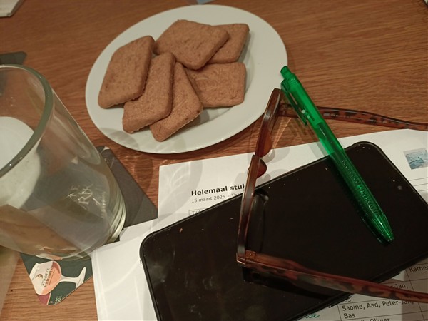 Wéér geen oliebol eten Kerstversiering verwijderen Starten bij het nieuwe toneelgezelschap De cd-kast uitbreiden, zodat de stapels cd’s die er nu niet in passen niet meer in de weg liggen De vakantiereis door Schotland plannen, accommodaties reserveren en busritten boeken Nieuw paspoort aanvragen ipv ID-kaart, want Schotland Lamento (Campert) uit het hoofd Minimaal drie liefdevolle aanrakingen op een dag Pistachetiramisu De tweeënnegentigste verjaardag van Onze Vader vieren en zijn Oorlogswinterverhaal schrijven Sowieso schrijven Buikje eraf > krachttraining gaan doen Iets met zeewier maken (pakje is al een jaar over de datum) Helemaal stuk gaan Concert van Pat Metheny’s Side-Eye meemaken Die vakantiereis door Schotland maken Tekst monoloog leren voor de speciale voorstelling rondom Keti-Koti Afwijken van alle malle routines Winwood zien De internetkabel die langs de muur in de woonkamer loopt wegwerken Pianoskills oefenen Nieuwe schoenen Vakantie 2027 plannen: met de trein naar Turkije om Arie te ontmoeten Nóg minder boeken aanschaffen Nóg meer herlezen Balkonplafond witten Helemaal van Twitter af (en alles van Meta); Firefox inruilen voor Vivaldi Mezelf nóg plantaardiger voeden Rijksmuseum bezoeken Op werkdagen meer drinken dan alleen die paar koppen koffie ’s morgens Dordrecht Tijd maken Met Kerst weer het land uit, maar waar heen? (Plannen.) Zeggen dat ik van haar houd Nog zeker een jaar blijven schrijven voor FOK! Geen oliebollen kopen Aftellen tot vervroegd pensioen Dit lijstje herzien Alle trouwe lezers een goed en gezond nieuw jaar wensen