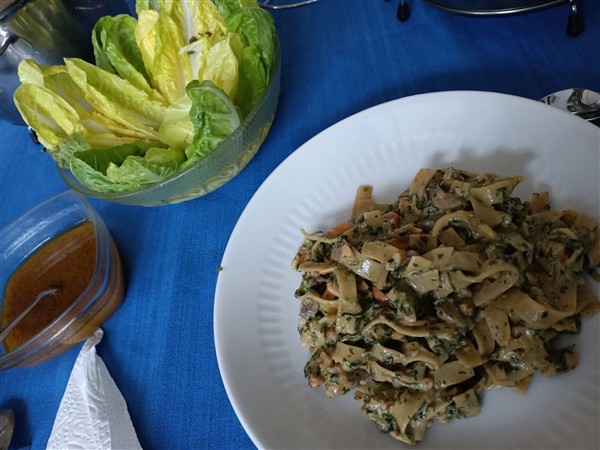 Kwart over zes. Ik loop een ronde hard langs kanaal en buiten het centrum, redelijk soepeltjes. Thuis nog terug in bed. Half tien staan we op. Koffie. We puzzelen wat op logeeraccomodaties in juni. Meer koffie met De Vrouw. De Zoon is er om half een voor lunch. Afwasje en stofzuigen. Ik wandel een rondje langs het kanaal. Vier uur is er de zondagmiddagluistersessie met de Duitsche vrienden (ik kies Yellow Magic Orchestra). Erna maak ik avondeten. De zondagrisotto is met shiitake, venkel en rode biet. Ernaast een salade van bosui, koolrabi, rode kool, komkommer en kaki. Voor De Vrouw bak ik steak bavette. We eten alles op. Natafelen. Afwas en afval. Webstek. Krant.