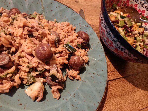 Zondag 22 februari: Zes uur. redelijk geslapen. Ik probeer een ronde hardlopen langs het kanaal en zowaar, het lukt redelijk goed. Thuis nog terug in bed. Kwart voor tien staan we op. Koffie. Meer koffie met De Vrouw. De Zoon is er na half een voor lunch. Afwasje en stofzuigen. Ik wandel een rondje langs het kanaal. Even uitrusten. Vier uur is er de zondagmiddagluistersessie met de Duitsche vrienden (Les Big Byrd). Erna maak ik avondeten: een zondagrisotto met shiitake, ui, pompoen, een restant sla en feta. Ernaast een salade van bosui, koolrabi, bleekselderij, rode kool en komkommer. Voor De Vrouw bak ik steak bavette. We eten alles op. Natafelen. Afwasje. Krant. Webstek. Lezen. Muziek vandaag: Woodcut (Big Big Train), The Whorl (Judy Dyble)
