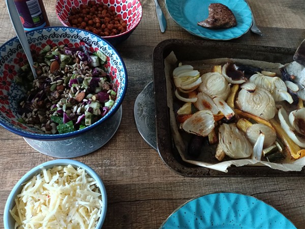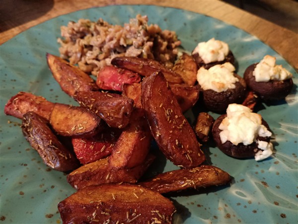 Zaterdag 14 februari: Kwart voor zeven. Redelijk geslapen. Koffie, ontbijt. Begin van de morgen loop ik de gebruikelijke zaterdagmorgenronde langs slager en super. Dan nogmaals het centrum in voor een bezoek aan de Syrische winkel. Koffie met De Vrouw. Lezen. Meer koffie met De Vrouw. Lunch. Afwasje en huishoudelijks. Ik wandel een rondje langs kanaal en door park. Thuis uitrusten. Eind van de middag maak ik avondeten. Zaterdaggroenten in de oven: aardappel, bataat, pastinaak, wortel en met feta gevulde kastanjechampignon. Salade van bosui, bleekselderij, koolrabi, rode kool, komkommer en kaki. Voor De Vrouw bak ik steak bavette. We eten de groenten op en het restant salade is voor morgen. Natafelen. Afwasje. Lezen. Webstek. Lezen. Muziek vandaag: That Which Passes – 1995 Soundscapes – Live Volume 3 (Robert Fripp), November Suite – Soundscapes – Live At Green Park Station 1996 (Robert Fripp), Philly ’76 (Frank Zappa), het eerste plaatje uit Flashback (Electric Light Orchestra)