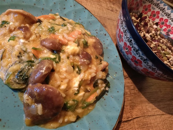 Zondag 8 januari: Kwart over zes. Ik loop een ronde hard langs het kanaal. Het is nat mistig en lopen gaat soepel. Thuis nog terug in bed. Pas tegen tien uur staan we op. Koffie met De Vrouw. We puzzelen op accommodaties tijdens onze vakantie in juni. Meer koffie met De Vrouw. We boeken alle appartementen en hotel. Lunch. Natafelen. Afwasje en stofzuigen. Ik wandel een rondje langs het kanaal. Dan is het tijd voor de zondagmiddagluistersessie met de Duitsche vrienden (Fuzzy Duck). Erna maak ik avondeten. Eerst een salade van bosui, koolrabi, rode kool en komkommer. Vervolgens de zondagrisotto met kastanjechampignon, ui, bindsla en zoete aardappel. Voor De Vrouw bak ik steak bavette. We eten alles op. Afwasje. Krant. Webstek. Toneeltekst. Muziek vandaag: The Optimist (Anathema), Immunity (Rupert Hine), The Forest Sessions (Jonathan Hultén)