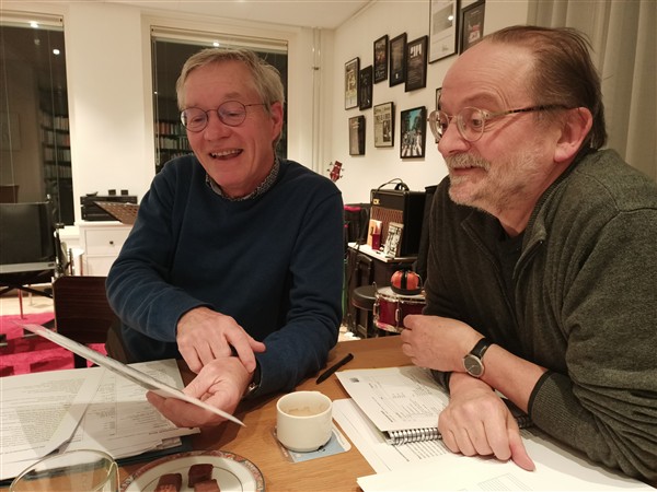 Dinsdag 24 februari: Redelijk geslapen. Op tijd op de werkplek. Wederom veel. Tussen de middag wandel ik door bos. In de middag wederom veel. Kwart over vijf thuis. De Vrouw serveert een mooie soep van pompoen, tomaat en wortel, met ernaast het restant eierovenschotel van gisteren. We eten er fiks van, want smakelijk. Natafelen. Afwasje. Half zeven naar Peter-Jan. We werken het programma van Helemaal stuk (uitverkocht, overigens) verder uit en repeteren een boel scènes. Er is nog veel werk, maar het krijgt mooi vorm. Tien uur thuis. Muziek vandaag: geen
