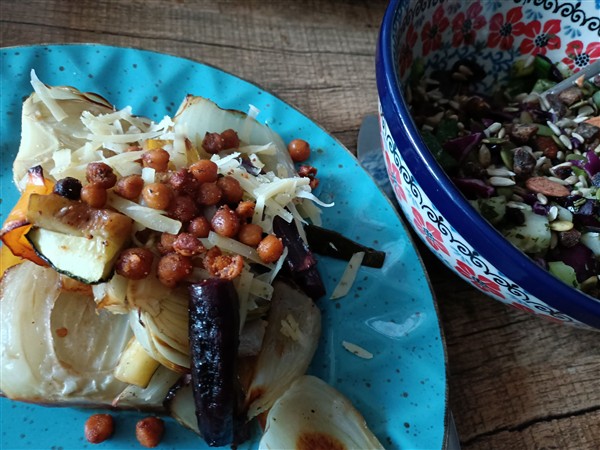 Woensdag 25 februari: Kwart voor zes. Ik loop een ronde hard om het centrum. Zwaar, maar het lukt uiteindelijk goed. Begin van de ochtend wandel ik naar de super. Koffie. Dan fiets ik naar Onze Vader. Ik wissel was, even later is De Zus er ook en we drinken koffie. Na een half uur rijd ik weer terug. Koffie met De Vrouw. Lunch. Afwasje en huishoudelijks. De zon schijnt, het is zeer zacht en ik wandel een klein rondje langs het kanaal en door park. Uitrusten. Eind van de middag maak ik avondeten. Venkel, regenboogpeen, paprika en courgette uit de oven, met ernaast geroosterde kikkererwten en een salade van bosui, bleekselderij, koolrabi, rode kool en komkommer. Voor De Vrouw bak ik kogelbiefstuk. We eten de hoofdschotel op, van de salade blijft nog flink wat over. Natafelen. Afwasje. Krant. Lezen. Webstek. Toneeltekst. Lezen. Muziek vandaag: Alone In The Universe (Jeff Lynne’s ELO), Firebrand (Ring van Möbius), Earthrise – Live At The Marquee 1974 (Camel)