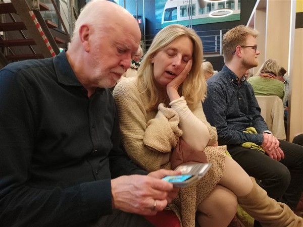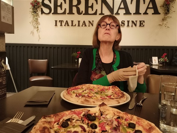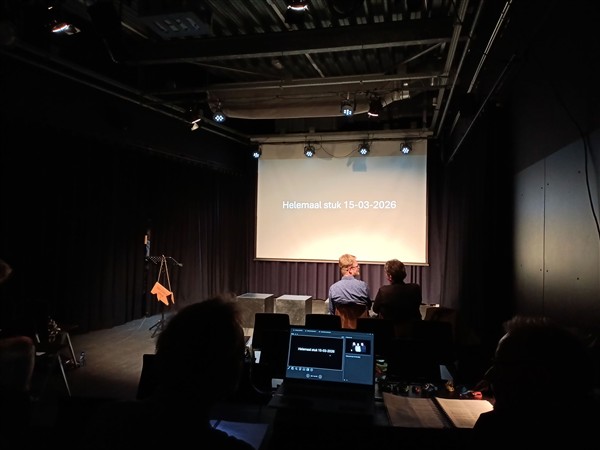Zondag 15 maart:Helemaal stuk Half zeven. Redelijk geslapen. Ik loop een ronde hard langs het kanaal. Thuis nog terug in bed. Even na negen uur staan we op. Koffie. De Zoon is er om kwart voor elf voor brunch. Afwasje. Iets na twaalf uur loop ik naar Gigant. Al snel zijn we met alle medewerkers aan de voorstelling aanwezig. We spelen nog een enkele scène door, doen een korte technische doorloop en zetten alles tot in het kleinste detail klaar. De deur van de zaal gaat om twee uur open en een half uur later begint de derde voorstelling van Helemaal stuk. Het is hard werken achter de schermen en ik krijg weinig mee van de onderdelen waar ik zelf niet in speel. In mijn beleving gaat het vloeiend en goed. Ik speel geconcentreerd en maak geen fouten. Is het programma te zwaar? Het thema ‘inclusie’ lokt het wel uit, maar er zijn genoeg luchtiger onderdelen. De eerste set lopen we tien minuten uit; de tweede set verloopt volgens planning. Kwart voor vijf is het klaar. We ruimen snel op en dan is er de afterparty in de foyer. Veel mooie reacties. Alle spanning en energie gutst mijn lijf uit: ik ben doodmoe. Half zeven zijn we thuis. Even omkleden en dan naar het nabijgelegen Italiaanse restaurant voor een pizza Caliente en Giardino. Acht uur thuis. Even zitten en nog voor half tien slapen. Muziek vandaag: Side-Eye III+ (Pat Metheny)
