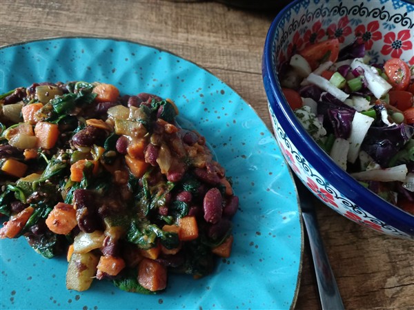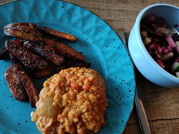Woensdag 25 maart: Zes uur. Ik loop een ronde hard om het centrum en het lukt goed. Koffie en allerlei. Begin van de ochtend fiets ik naar een super. Thuis koffie. Dan rijd ik naar Onze Vader. Hij is wat verward, want is al een paar dagen zijn rollator kwijt. Gelukkig is er een leenexemplaar. Als hij wat rustiger is, hebben we het over de zorgwoningen die hij heeft bezocht en over het oude huis en wat hij mee zou kunnen en willen nemen. Hij is inmiddels aangemeld bij twee tehuizen en waarschijnlijk moet hij nog ergens tijdelijk gaan wonen tot er een definitieve woning vrij komt. Thuis lunch. Afwasje en huishoudelijks. Ik wandel een klein rondje langs het kanaal. Telefoon van Ank. We spreken af voor zaterdagmiddag. Lezen. Eind van de middag maak ik avondeten: een gele curry met ui, zoete aardappel, courgette, rode boon en veldsla. Ernaast een salade van bosui, rode rettich, rode kool, kerstomaat en mozarella. Voor De Vrouwe bak ik runderschnitzel. We eten alles op. Natafelen. Afwasje. Krant. Webstek. Lezen. Muziek vandaag: Young Americans (David Bowie), Resurrecting Dragons (unofficial) (Yes)