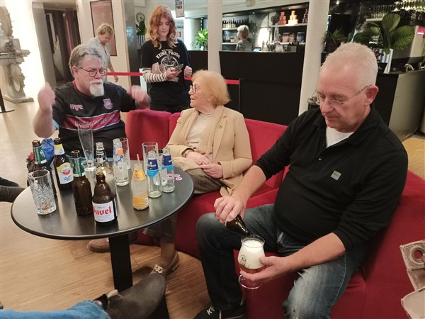 Half acht wakker en op. Negen uur ontbijt. Goed en uitgebreid ontbijt. Half elf wandelen we het centrum in. In het Betahuis spreekt Michel Deville, geïnterviewd door Tim, over gitaarwerk van Zappa. Erna naar de tostibar. Daar koffie met taart. Het loopt er bomvol. Fred Händl speelt er wat Zappa, maar na een kwartiertje gaan we terug naar de kamer om wat te rusten. Half vijf weer naar het centrum. We treffen Peter en Inge en in het Indiase restaurant eten we (ik: veg samosa en veg paneer curry). Zeven uur in de Nieuwe Nor. Kleine zaal. Zeer energiek half uur van het Japanse duo Enjako Yoyo. De eerste helft van Orange Claw Hammer is rommelig en niet goed, daarna maken ze het goed. Heath? Heath! Waanzinnige psychedelische rock met malle maatsoorten, snijdende harmonica en gierende gitaren. En heel lange stukken. Tegen elven Uncle Meat. Puik optreden, veel lol, strakke blazerssectie (bedankt, Joop), hilarische Nederlandse teksten (Kees!) en de toegift is een zootje, maar dat doet niets af aan het plezier. Iets na twaalf is het afgelopen en gaan we terug naar de kamer.