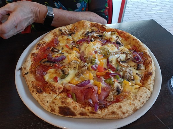 De wekker gaat om zes uur, maar ik hoor hem pas om tien over. Half acht ontbijt, net zo uitgebreid. We nemen wat mee voor onderweg. Kwart voor negen trein naar Eindhoven. De overstappen gaan voorspoedig en om kwart over twaalf staan we op het station in Apeldoorn. Thuis omkleden en gelijk door naar Gigant. Ik heb de generale van gisteren gemist en hoop op de mogelijkheid van korte doorloop. Meer tekst volgt. Half zeven ben ik thuis. We wandelen naar het Italiaanse restaurant iets verderop in de straat. De zaak is gesloten wegens drukte, maar men rekent op ons. We eten een mooie en zeer smakelijke pizza (mandorle). Kwart over acht zijn we thuis. Even op adem komen en rond half tien ga ik slapen.