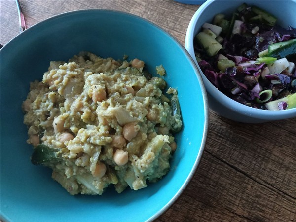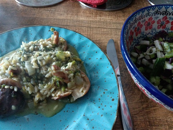 Op tijd op de werkplek. Tussen de middag wandel ik door veld en bos. Kwart over vijf thuis. De Vrouw serveert rijst met een curry van allerlei groenten en ernaast salade. Natafelen. Afwasje. Krant. Webstek. Lezen.