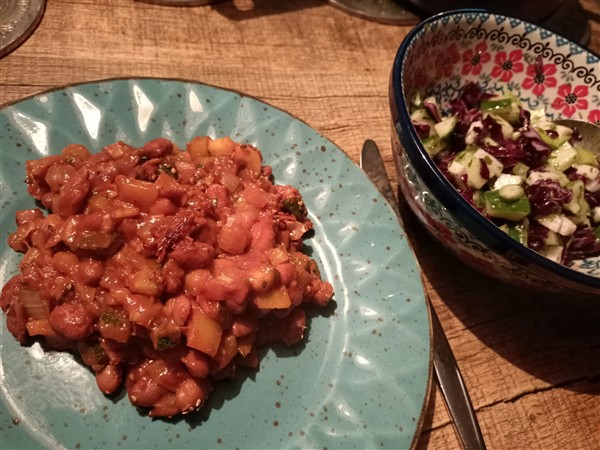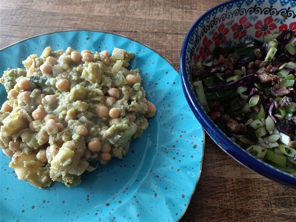 Weer op tijd op de werkplek. Tussen de middag wandel ik door bos. Kwart over vijf thuis. De Vrouw serveert het restant groentecurry van eergisteren met een salade ernaast. We eten alles op. Natafelen. Afwasje. Krant. Webstek. Lezen.