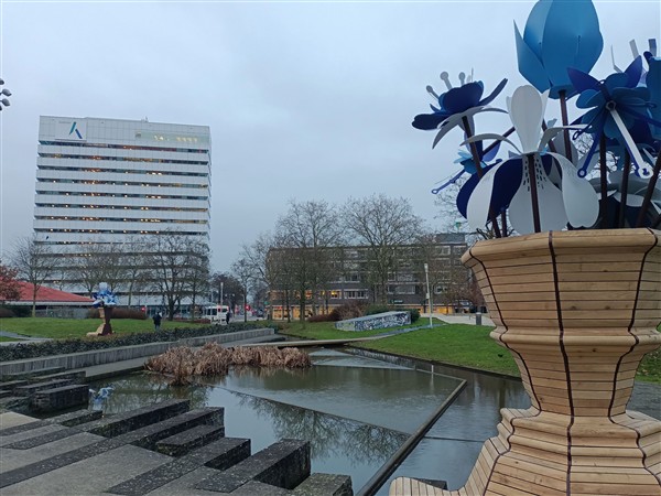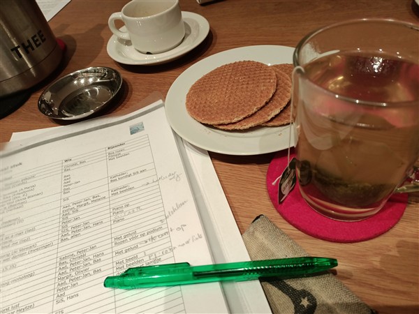 Kwart voor acht. Na het ontbijt zijn de koffers snel ingepakt. Even na elf lopen we in de richting van het station Noord. Daar drinken we thee. Vervolgens naar de opstapplaats van de bus. We moeten nog even wachten. Tien over twee zijn we onderweg en we rijden via Eindhoven en Nijmegen naar Arnhem. Daar komen we kwart voor zes aan. Twintig minuten later vertrekt onze bus naar Apeldoorn. We eten pizza caliente en primavera bij de Italiaan in de straat en om acht uur zijn de koffers uitgepakt. Kranten.