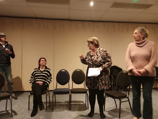 Donderdag 15 januari: Weer op tijd op de werkplek. Werk. Tussen de middag wandel ik door bos. Werk. Kwart over vijf thuis. De Vrouw serveert een witlofcurrysoep, het restant gevulde groenekoolbladeren van gisteren en een salade. Smakelijk. Natafelen. Afwasje. Webstek. Dan fiets ik naar Ugchelen. Daar ontmoet ik de spelers van Mirakel en nu is Caroline erbij. Heel fijn. We nemen de tekst van het hele stuk nogmaals door en vanaf volgende week gaan we hard aan de slag met de eerste scène. Muziek vandaag: geen