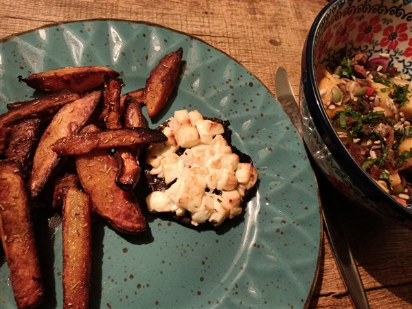 Zaterdag 31 januari: Half zeven. Koffie, ontbijt, allerlei. Begin van de ochtend loop ik de gebruikelijke zaterdagmorgenronde langs slager en super. Erna opnieuw het centrum in voor een bezoek aan een andere super en de Syrische winkel. Koffie met De Vrouw. Meer koffie met De Vrouw. Lunch. Afwasje en huishoudelijks. Dan fiets ik naar de herstelafdeling en bezoek Onze Vader. Hij is verward, was kort ervoor onwel geworden, maar herinnert zich er niets van. Sowieso weet hij weinig tot niets meer en daar maakt hij zich zelf ook zorgen om. Ik wissel was en weet toch een aardig gesprek met hem te voeren, ook al haalt hij van alles door elkaar en vertelt hij mij een verhaal dat ik nog geen minuut ervoor juist aan hém heb verteld. Na een half uur merk ik dat hij moe is en fiets ik terug. Thuis maak ik avondeten. Ik leg aardappel en bataat in een braadslede in de oven. Een klein restant salade van gisteren vul ik aan met kaki. Ik vul een portobello met feta en leg die bij de groenten in de oven. Voor De Vrouw bak ik steak bavette. We eten alles op. Natafelen. Afwasje. Lezen. Webstek. Lezen en toneeltekst. Muziek vandaag: Show Of Hands (Robert Fripp & The League Of Crafty Guitarists), The Bridge Between (The Robert Fripp String Quintet), 1999 – Soundscapes – Live In Argentina (Robert Fripp), Discovery (Electric Light Orchestra), Distant Satellites (Anathema), Magnification (Yes)