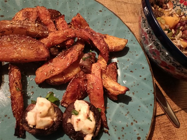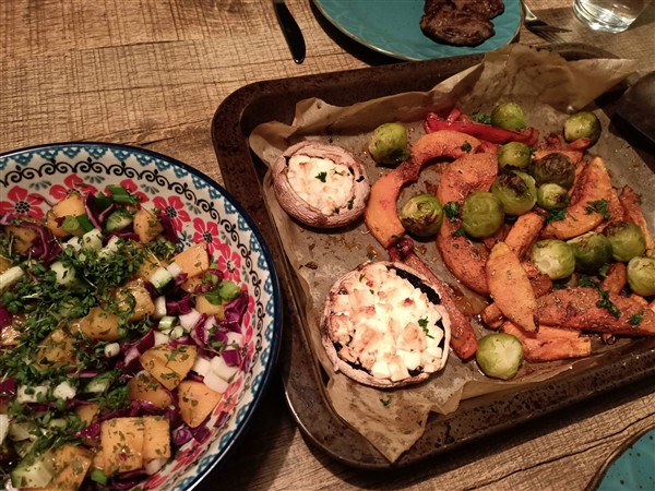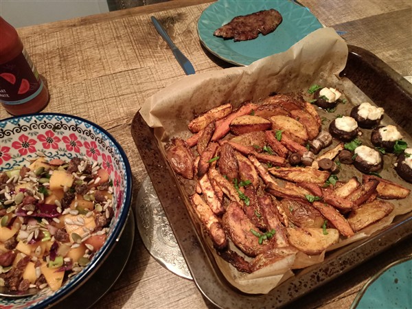 Zaterdag 14 februari: Kwart voor zeven. Redelijk geslapen. Koffie, ontbijt. Begin van de morgen loop ik de gebruikelijke zaterdagmorgenronde langs slager en super. Dan nogmaals het centrum in voor een bezoek aan de Syrische winkel. Koffie met De Vrouw. Lezen. Meer koffie met De Vrouw. Lunch. Afwasje en huishoudelijks. Ik wandel een rondje langs kanaal en door park. Thuis uitrusten. Eind van de middag maak ik avondeten. Zaterdaggroenten in de oven: aardappel, bataat, pastinaak, wortel en met feta gevulde kastanjechampignon. Salade van bosui, bleekselderij, koolrabi, rode kool, komkommer en kaki. Voor De Vrouw bak ik steak bavette. We eten de groenten op en het restant salade is voor morgen. Natafelen. Afwasje. Lezen. Webstek. Lezen. Muziek vandaag: That Which Passes – 1995 Soundscapes – Live Volume 3 (Robert Fripp), November Suite – Soundscapes – Live At Green Park Station 1996 (Robert Fripp), Philly ’76 (Frank Zappa), het eerste plaatje uit Flashback (Electric Light Orchestra)