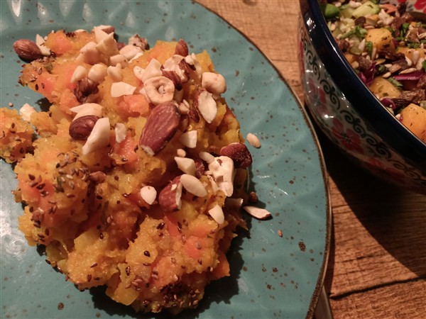 Maandag 16 februari: Redelijk geslapen. Op tijd op de werkplek. Werk. Tussen de middag wandel ik door bos en veld. In de middag werk. Kwart over vijf thuis. Krant. De Vrouw serveert een mooie dis van pompoen uit de oven, gebakken linzen, geroosterde pijnboompitten, parmesan en een dressing van honing met cajunkruiden. Ernaast een salade van witlof, augurk, rode kool en kaki. Zeer smakelijk allemaal en we eten er fiks van. Natafelen. Afwasje en afval. Lezen. Webstek. Toneeltekst. Muziek vandaag: David Bowie (David Bowie), The Gloaming (The Gloaming), de eerste helft van Live At Montreux 2003 (Yes)