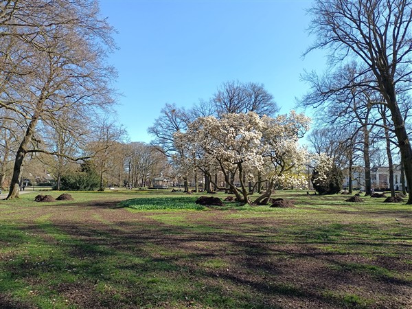 Zaterdag 21 maart: Lente. Kwart over zes op. Koffie, ontbijt, allerlei. Begin van de ochtend loop ik naar de slager en markt. Koffie met De Vrouw. Ik fiets naar de Syrische winkel en daarna door naar Onze Vader. Hij is rustig en opgewekt, heeft gisteren nog twee woonlocaties bekeken en die vindt hij beide prima. Een ervan is hier niet ver vandaan, dat scheelt reistijd voor zowel De Zus als mijzelf, dus dat zou ideaal zijn. Ik wissel was, we drinken koffie en kletsen nog wat. Thuis koffie met De Vrouw. Later lunch. Afwasje en huishoudelijks. Ik wandel een rondje buiten het centrum. Lezen. Eind van de middag maak ik avondeten. Ik leg aardappel en zoete bataat in een braadslede en die gaat de oven in. Een restant witlofbietensalade vul ik aan met komkommer en ik warm een restant dhal op. Voor De Vrouw bak ik steak bavette. We eten alles op. Natafelen. Afwasje. Lezen. Webstek. Er zijn foto’s van Ernst van zondagmiddag. Lezen. Muziek vandaag: At The End Of Time – Churchscapes – Live In England & Estonia, 1996 (Robert Fripp), Beyond Even (1992-2006) (Fripp & Eno), Live In London 1975 (unofficial) (Yes), Starship To The Gates Of Eternity (unofficial) (Yes), Camel (Camel), Tragic Magic (Julianna Barwick & Mary Lattimore)