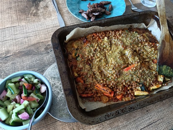 Woensdag 1 april: Zes uur. Ik loop een ronde hard om het centrum. Het lukt. Begin van de ochtend wandel ik naar de super. Koffie met De Vrouw. Dan fiets ik naar Onze Vader. Hij is er niet en ik vind hem op de gang als hij terugkomt van fysio. Hij is opgewekt, maar peinst over de verhuizing, al weet hij niet waar naartoe. Ik leg hem uit dat hij morgen intern verhuist naar een andere afdeling; daar blijft hij tijdelijk tot er een plek vrij komt in een van de twee locaties waar hij staat ingeschreven. Dat stelt hem gerust, al vraagt hij er later nog een paar keer naar. Ik wissel was. Thuis koffie met De Vrouw. Lunch. Afwasje en huishoudelijks. Ik wandel een rondje om het centrum en door park. Krant en uitrusten. Eind van de middag maak ik avondeten: ui, wortel, paprika en courgette uit de oven met linzen en knoflooktahindressing. Een restant salade van gisteren vul ik aan met komkommer. Voor De Vrouw bak ik runderreepjes. We eten er fiks van, maar er blijft voldoende over voor morgen. Afwasje. Lezen. Webstek. Lezen en toneeltekst. Muziek vandaag: Low (David Bowie), Yesterday And Today – A 50th Anniversary Tribute To Yes (various), het tweede en derde plaatje (het eerste concert) uit de doos Bongo Fury – 50th Anniversary Edition (Frank Zappa), het eerste plaatje van Live (Gotan Project)