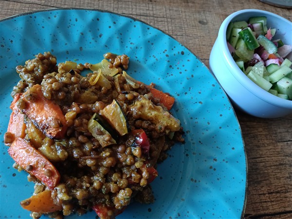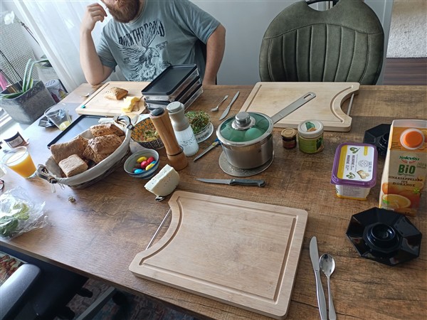 Vrijdag 3 april: Zes uur. Ik loop een ronde hard langs Grift en kanaal en het lukt prima. Allerlei. Koffie met De Vrouw. Meer koffie met De Vrouw. Ik wandel een rondje en haal het groentepakket op. Lunch. Afwasje. Ik wandel een kort rondje langs het kanaal. Dan even de buurvrouw feliciteren met haar tachtigste verjaardag. Eind van de middag maak ik avondeten, een chili van prei, courgette, kikkererwt, rode boon en waterkers. Het restant salade van gisteren vul ik aan met komkommer. Voor De Vrouw en De Zoon bak ik tartaar. De Zoon is er om half zes. We eten alles op. Natafelen. Afwas. Krant. Webstek. Lezen en toneeltekst. Muziek vandaag: het tweede plaatje van Live (Gotan Project), Discretion (Travis & Fripp), het vierde en vijfde plaatje uit de box Bongo Fury – 50th Anniversary Edition (Frank Zappa)