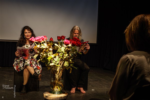 een intiem feest vol verhalen, gedichten en kleinkunst, had met Jamila, Safaa en Moafak drie bijzondere dichters te gast, afgelopen zondag 19 januari. Zij droegen hun werk voor in het Arabisch en Moafak begeleidde hen op de oud, de Arabische luit.