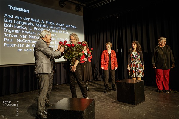 Set 2 Sneu (Sabine & Peter-Jan) Present From Hell / Ierse zeemannen (Beatrice van der Poel / Bob Fosko / Maria Goos) (Christèl & Bas) Marlène Dietrich (Hans, Aad & Peter-Jan) Bloemlezing (Aad, Bas & Peter-Jan) Kort stukje (Margit & Olivier) Girl (Aad, Peter-Jan & Bas) François – Of je worst lust (Sabine & Peter-Jan) Geheim gedicht (Ingmar Heytze) (Aad) From the start (Sisters in Sync) Java jive (Sisters in Sync) Digibanaliteit (Sisters in Sync) Last rose of summer (Esther) Terug naar mijn geboortestad (Aad) Yesterday (Hans, Aad & Peter-Jan) Can’t Buy Me Love (Sisters in Sync) Outro – ‘Bloemen gekocht’ (Aad, Bas & Peter-Jan + Sisters in Sync) Aftiteling Toegift: Ik wil met jou wel dansen (André van Duin) (iedereen)