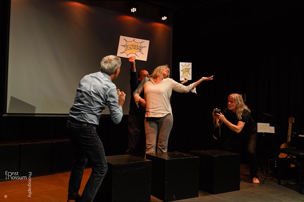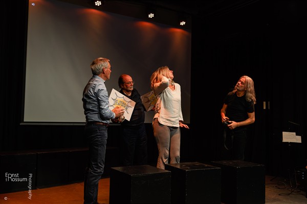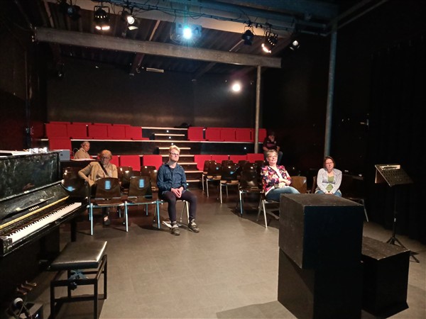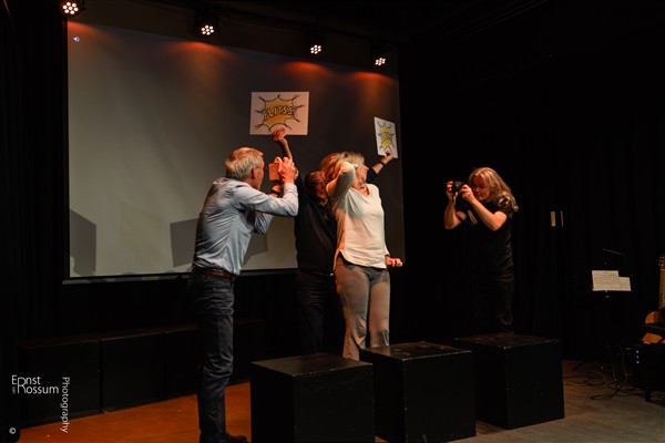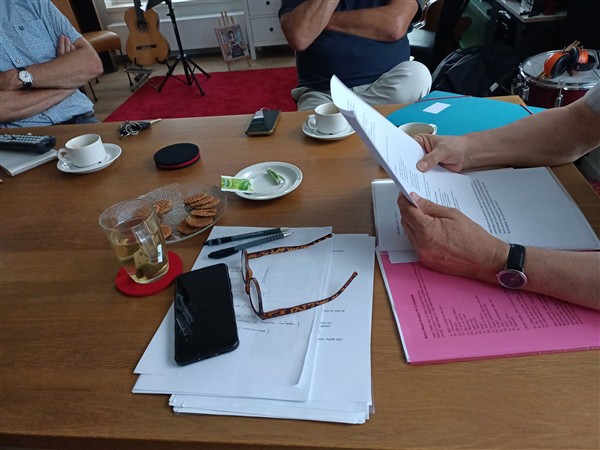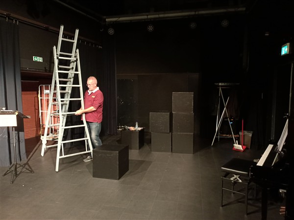 Telefoonfoto’s van de voorbereiding op 30 november en (vanuit de coulissen) van de voorstelling: (in afwachting van de goede foto’s van onze hoffotograaf)