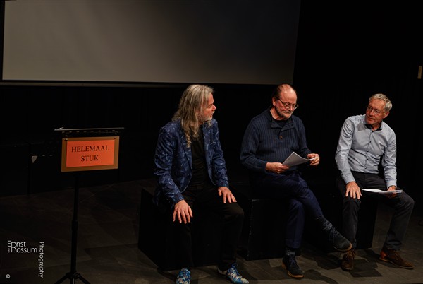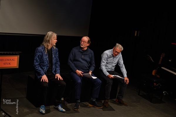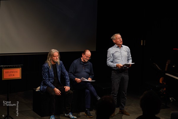 ‘Helemaal stuk, een voorstelling van zaken’: Aad van der Waal, Peter-Jan de Wilde en Bas Langereis presenteren een nieuwe reeks theatervoorstellingen vol poëzie, muziek, verhalen en ongemakkelijke scènes, in zaal De Walvis in Gigant te Apeldoorn.
