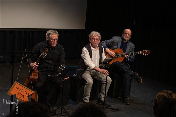 Aad van der Waal, Peter-Jan de Wilde en Bas Langereis presenteren een reeks theatervoorstellingen vol poëzie muziek verhalen en ongemakkelijke scènes.#HelemaalStuk ?: Ernst van Rossum